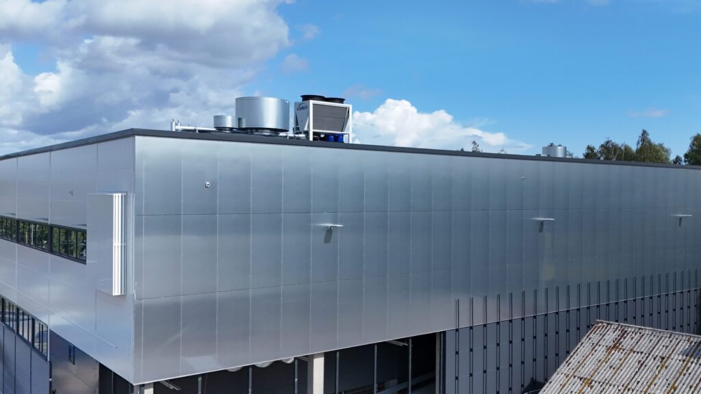 We installed the aluminum composite facade for the site. The facade features WRY Oy’s product, Alucobond NaturAl Pure 402 aluminum composite panels, which give the building a refined and high-quality appearance.